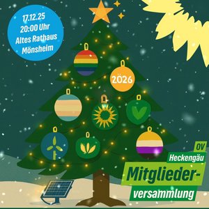 Lasst uns in vorweihnachtlicher Atmosphäre zusammenkommen, um uns kennenzulernen, auszutauschen und die Weichen für das kommende Jahr zu stellen. Die Landtagswahl am 08. März 2026 steht an und wir wollen als Ortsverband mit klarer Haltung, frischen Ideen und gemeinsamer Stärke auftreten. Ob langjähriges Mitglied oder frisch dabei: Eure Perspektiven, Eure Energie und Euer Engagement sind gefragt. Gemeinsam gestalten wir eine lebenswerte Zukunft für Heckengäu – ökologisch, gerecht und demokratisch.