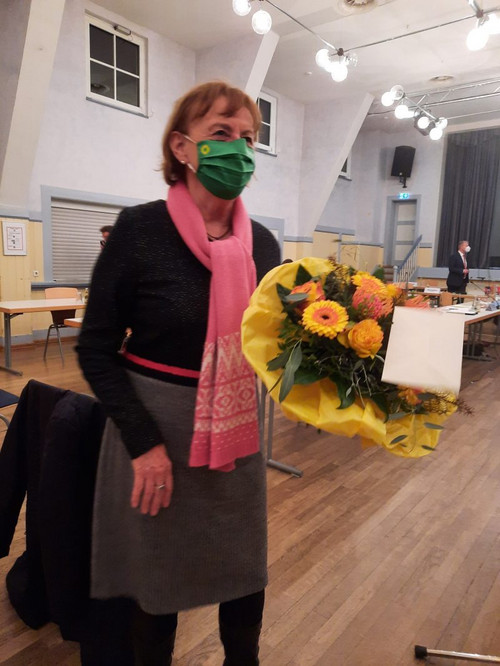 Linda Bahlo ist es zu verdanken, dass sich zur Kommunalwahl 2019 eine Grüne Liste für den Gemeinderat in Königsbach-Stein gegründet hat, die dann mit vier Mandaten ausgestattet im Sommer 2019 in den Rat einzog. Ein fulminantes Ergebnis! Ohne Frau Bahlo als „Grünes Gesicht“ vor Ort hätte das wohl nicht geklappt, das sehen wir vom Grünen Ortsverband als auch die Grünen Fraktionskolleg*innen so. Seit über 25 Jahren hat sich Linda Bahlo mit viel Engagement und Herzblut für die Grünen Themen stark gemacht. In seiner kurzen Abschiedsrede im Gemeinderat betonte der Grünen-Fraktionssprecher Rolf Engelmann dies und hob auch die gute Zusammenarbeit hervor: „Wir waren immer ein gutes Team und haben in den letzten anderthalb Jahren schon einiges zusammen in Bewegung gebracht“. Die Fraktionskolleg*innen hatten an Linda Bahlo auch ihren Humor, ihre tollen Ideen und ihre Begeisterungsfähigkeit geschätzt. Mit einem schönen Blumengebinde dankten sie ihr in der Gemeinderatssitzung für die geleistete Arbeit und wünschten ihr für die Zukunft alles Gute. Von Bürgermeister Genthner gab es eine Urkunde zum Abschied.