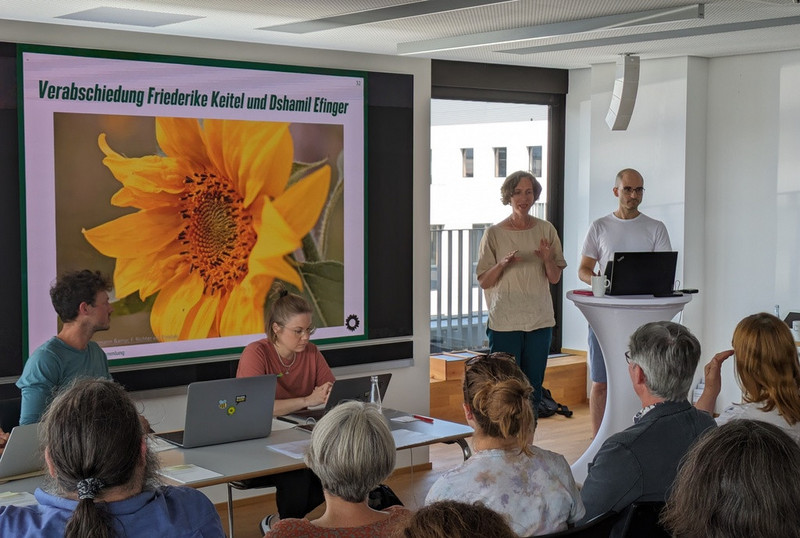 Leider mussten dann mit Dshamil und Friederike zwei Vorstände verabschiedet werden, die den Kreisverband (KV) jeweils wegen eines Wohnsitzwechsels verlassen. Friederike lies ihre Zeit im KV unter dem Motto Zusammenhalt, Gemeinschaft und Zukunft Revue passieren und blickte in die Zukunft: "Ein diverser KV braucht einen diversen Vorstand." Alessia Trovato dankte den scheidenden Vorständen für ihr großes Engagement: "Mit Ideen, Erfahrung und Wissen haben sie die Grünen vor Ort voran gebracht."