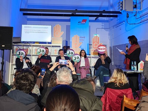 Im alten Schlachthof kamen auf Einladung des DGB, des Mieterbundes und der Wohngenossenschaft die lokalen Kandidierenden für die Landtagswahl zusammen. Diskutiert wurden die Themenkomplexe Wirtschaft, Miete & Wohnungsbau sowie gemeinwohlorientiertes Wohnen. Etwas 100 interessierte Bürgerinnen und Bürger verfolgten die Statements.