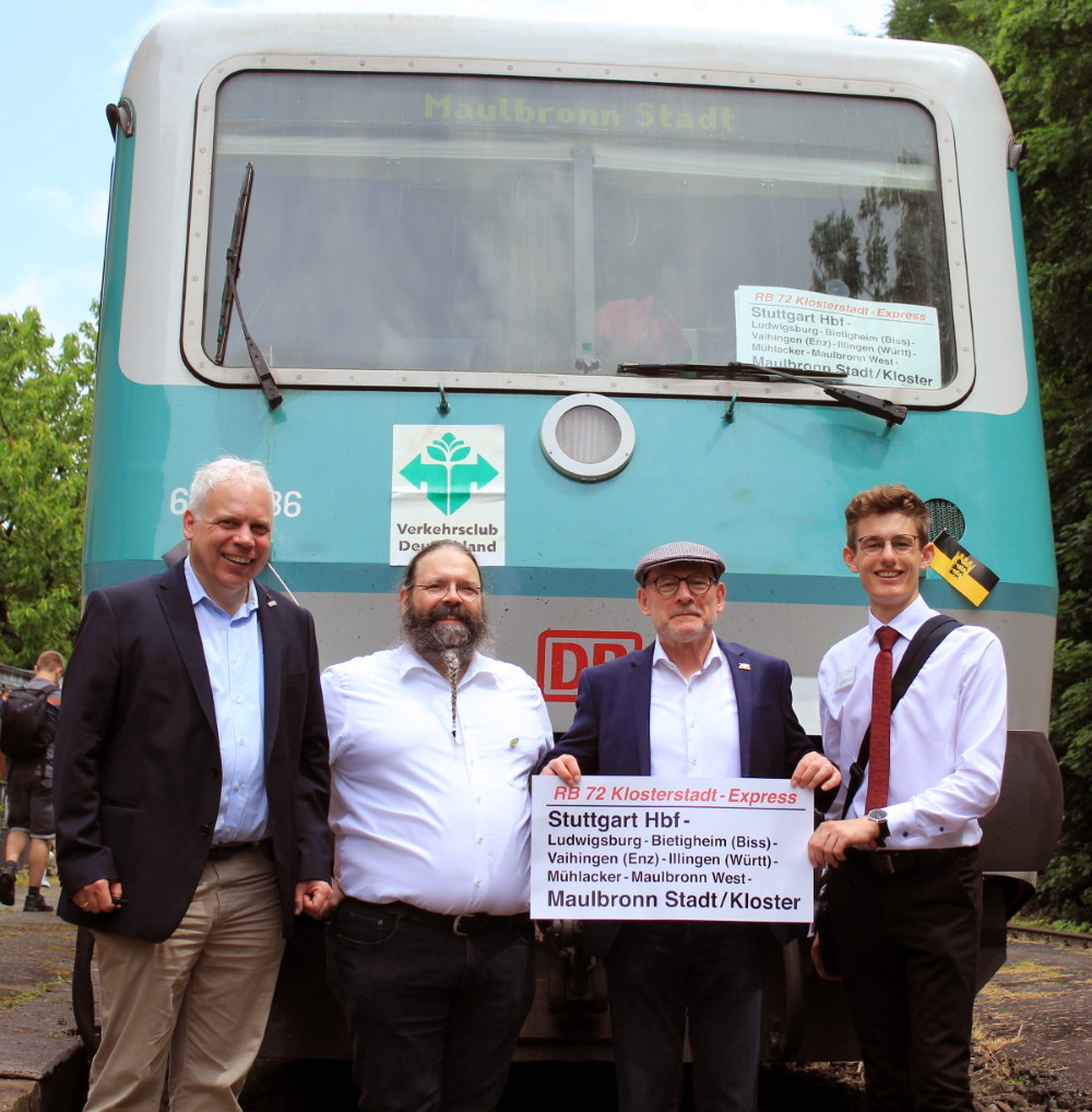 Seit mehr als 25 Jahren setzt sich der VCD mit dem Landesvorsitzendem Matthias Lieb dafür ein, dass die Bahnstrecke Maulbronn West – Maulbronn Stadt nicht stillgelegt wird. Zunächst auf eigene Kosten des VCDs wird mittlerweile die Bestellung vom Land übernommen. Trotzdem wird der Betrieb bis heute durch Ehrenamtliche des VCD, wie z.B. auch unserem 2. Vorstand Marlon Frommer, unterstützt.