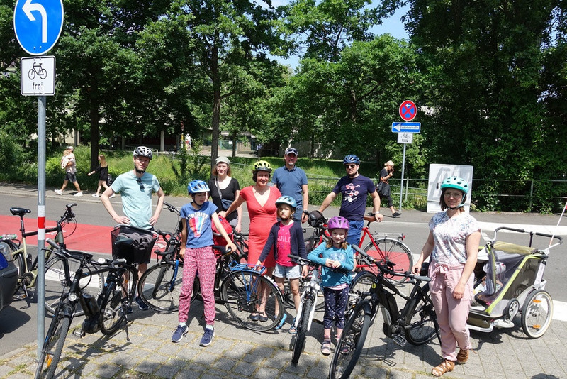 Am Weltfahrradtag sollte eine kleine Bestandsaufnahme der kürzlich umgesetzten Radverkehrsprojekte in der Pforzheimer Innenstadt gemacht werden sowie Ideen und Probleme für die Zukunft gesammelt werden. So führte die Tour vom Stadtmuseum in Brötzingen über die neugestaltete Westliche KF bis in die Innenstadt. Hier fiel der sehr schmale Radstreifen auf, der durchweg in Reichweite der Türen der geparkten Autos führt und damit ein Gefahrenpotential bietet. Weiter ging es unter dem Hauptbahnhof in die Nordstadt zu der neuen Überquerung des Hohenzollernstraße an der Erbersteinstraße. Mit dieser Überquerung ergibt sich ein besserer Zugang mit dem Rad in das Quartier. Allerdings trägt die Führung des Radstreifen zwischen den Autospuren nicht zu einem sichern Gefühl bei. Nächste Etappe war die Östliche KF die sowohl ein- als auch auswärts befahren wurde und gelobt wurde. Zum Abschluss führte die Tour ein Stück an der Enz entlang zur neuen Ampelquerung am Turnplatz. An der Enz fiel die immer noch sehr gefährliche Querung der Deimlingstraße am Parkhotel negativ auf.