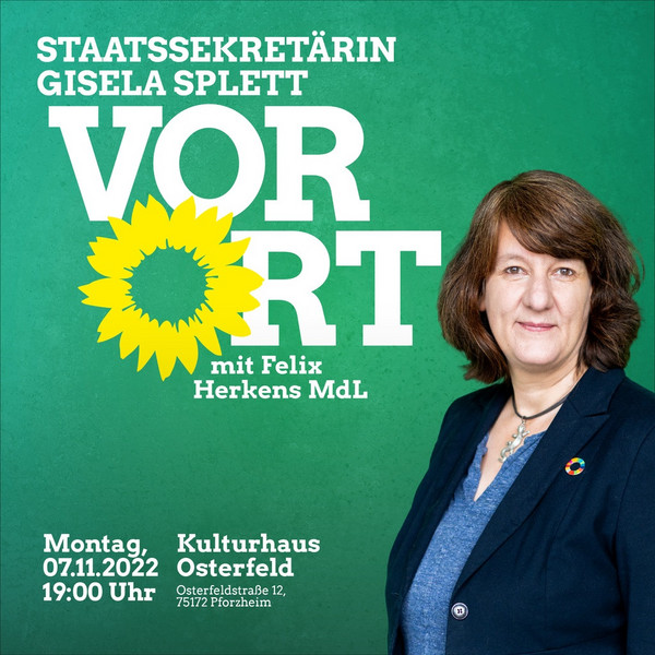 Gisela Splett ist seit 1997 Mitglied bei den Grünen im KV Karlsruhe. Sie war Stadträtin in Karlsruhe und wurde 2006 erstmals in den Landtag gewählt. Seit 2011 ist sie auch Staatssekretärin, zuerst für Verkehr und jetzt im Finanzministerium. Vor der Veranstaltung war sie bereits in Pforzheim mit unserem Landtagsabgeordneten Felix Herkens unterwegs und besuchte die Hochschule und den Wildpark.