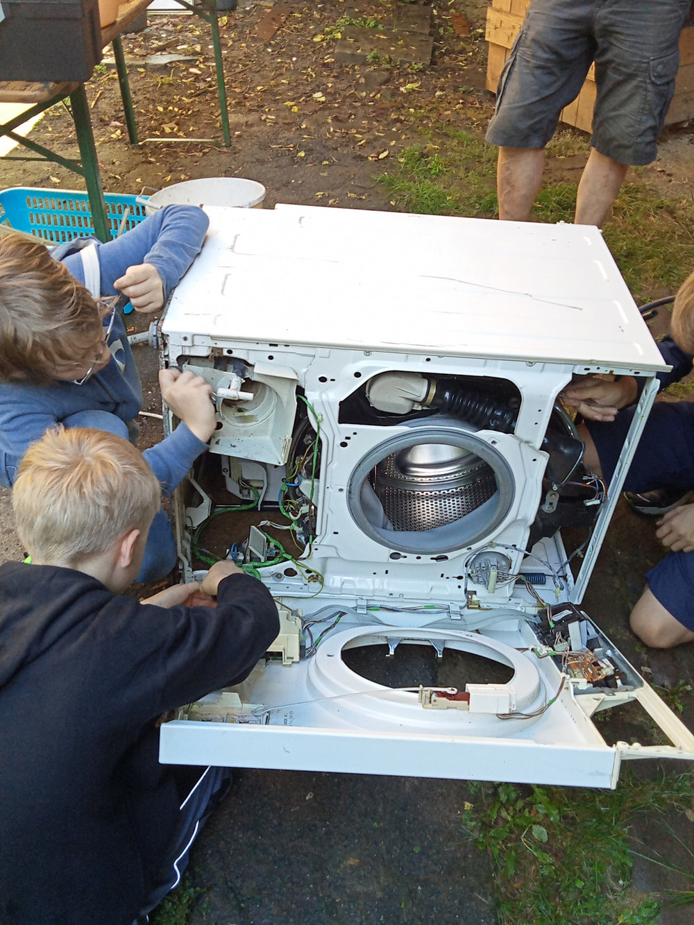 Wir Grüne in Remchingen veranstalten im Rahmen des Sommerferienprogrames den Waschmaschinentag. Hierbei zerlegen je 3 Kinder eine Waschmaschine in alle Einzelteile. Uns fehlen dafür noch 3 Waschmaschinen. Haben Sie noch eine defekte oder überalterte Maschine im Keller? Wir holen diese ab und entsorgen die zerlegten Maschinen danach.